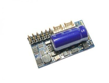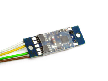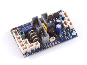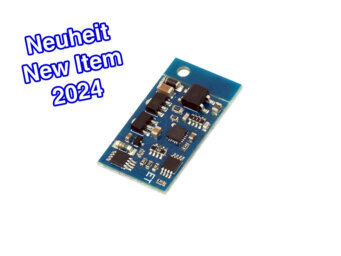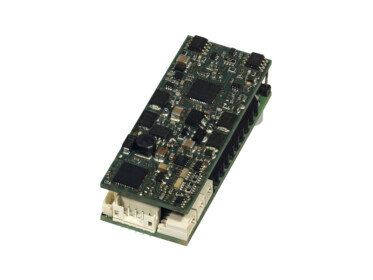 Speziell für die Märklin Spur 1 Schnittstelle entwickelter Lokdecoder mit 3,5 Ampere Fahrstrom und 4,5 Ampere Gesamtstrom für zweimotorige Loks.